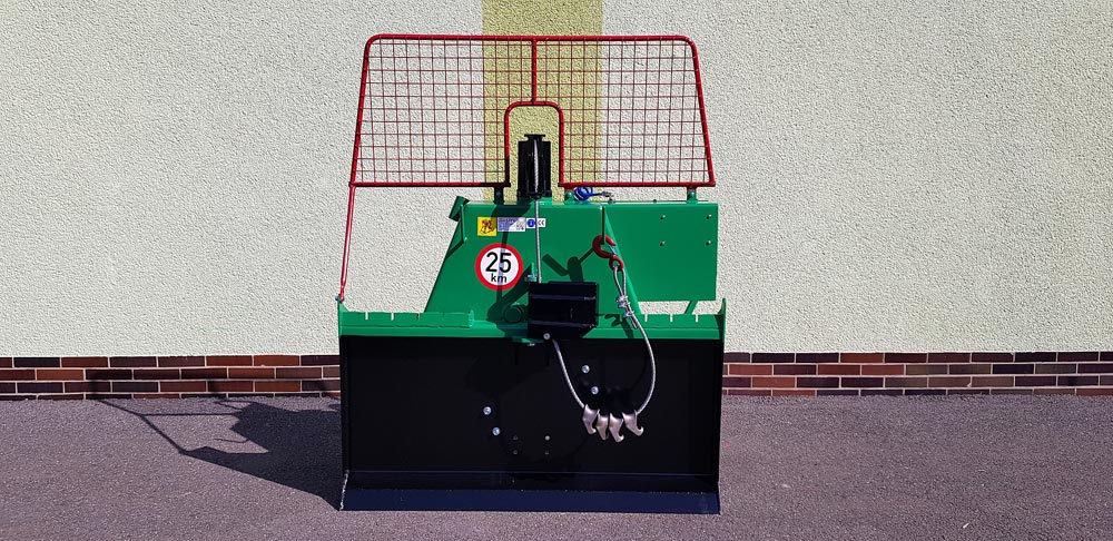 Az acélkötél csörlő faanyag húzására és megközelítésére szolgál. Csatlakoztatás a traktor hárompontos vonószerkezetéhez. A teljes szerkezet hegesztett és megvastagított anyagokkal megerősített, hogy hajlítással, repedéssel és egyéb sérülésekkel szemben ellenálló egységet alkosson.