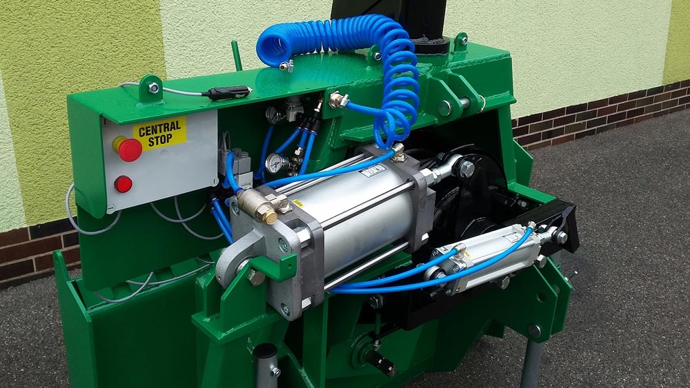 A kötéltekercselés távvezérlése 60 m hatótávolságú vezeték nélküli adóval történik. Két PNEUMATIC henger vezérli, az első a csörlő tengelykapcsolóját (kötélcsévélés), a második henger pedig a féket (racsni).