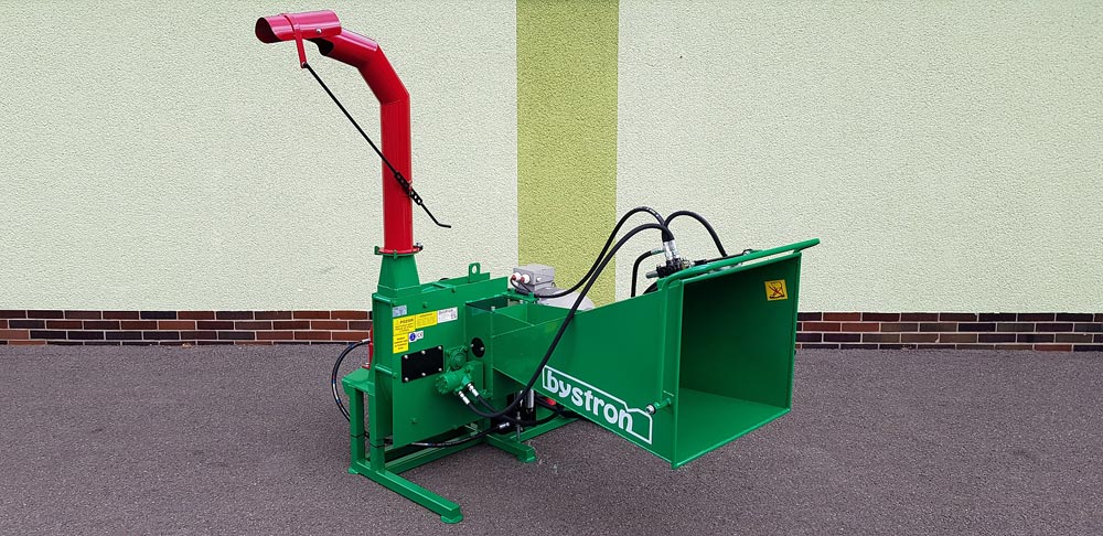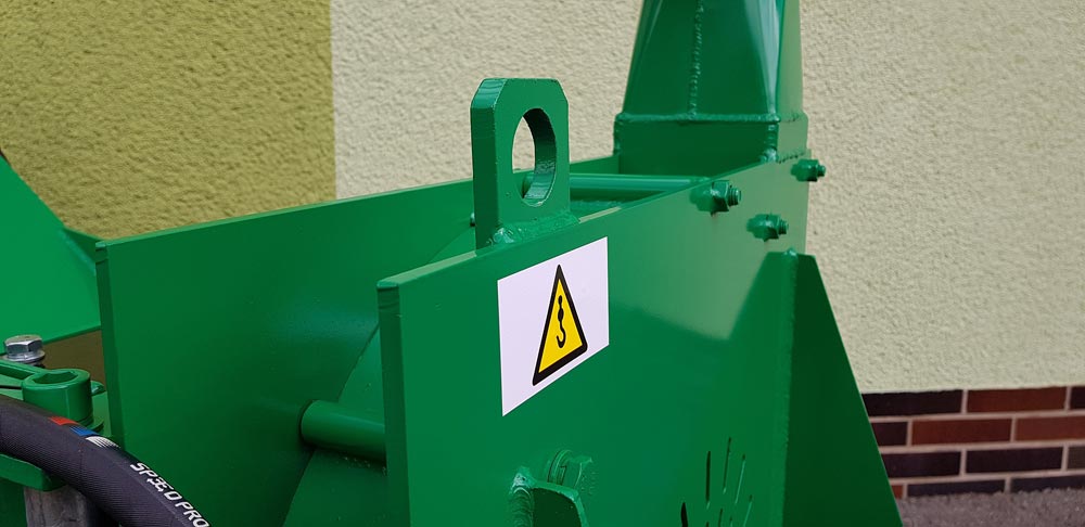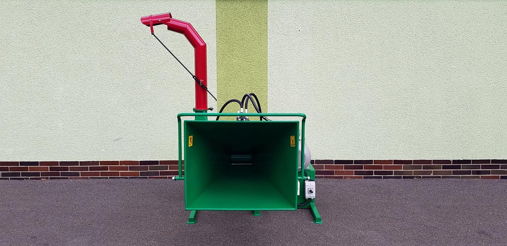 A zúzógép az áthelyezéshez felfüggesztő szemmel van felszerelve. Aprításkor az ágakat a traktor hátuljáról helyezik be, és a forgácsot a szabad térbe fújják. A forgácsot az állítható kéményen keresztül 360°-os tartományban fújjuk ki.