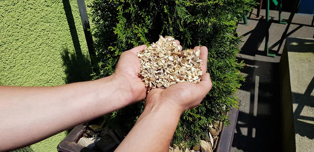 A keletkező apríték alkalmas csigás adagolóval ellátott kazánokban történő fűtésre, mulcsozásra, komposztálásra, préselésre.